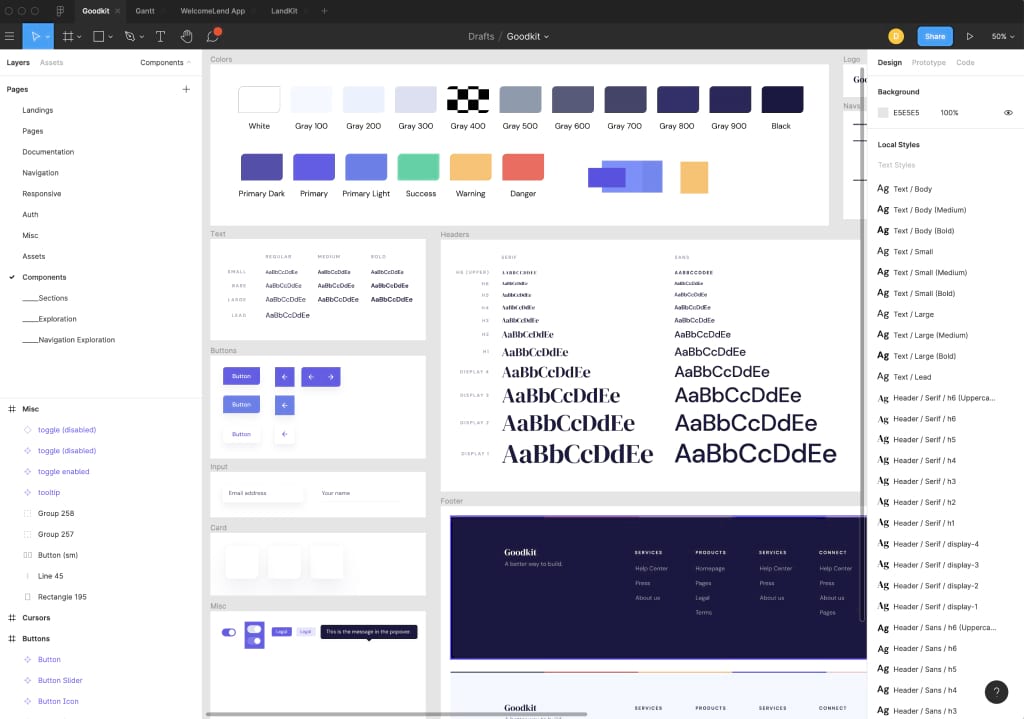 Since we work pretty fluidly between Figma and actual code, we've decided it's a better investment of time to continue improving Goodkit over babysitting our design file. That said, we realize it can be super useful to have a design resource to rough out new pages or spin up component variations. To that end, we provide an "unofficial" Goodkit Figma file for you to play with.